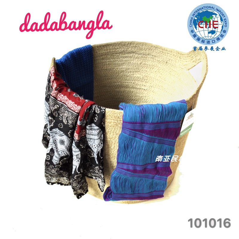 孟加拉進(jìn)口2018進(jìn)博會(huì)手工黃麻儲(chǔ)物籃臟衣籃手提籃多用途收納籃